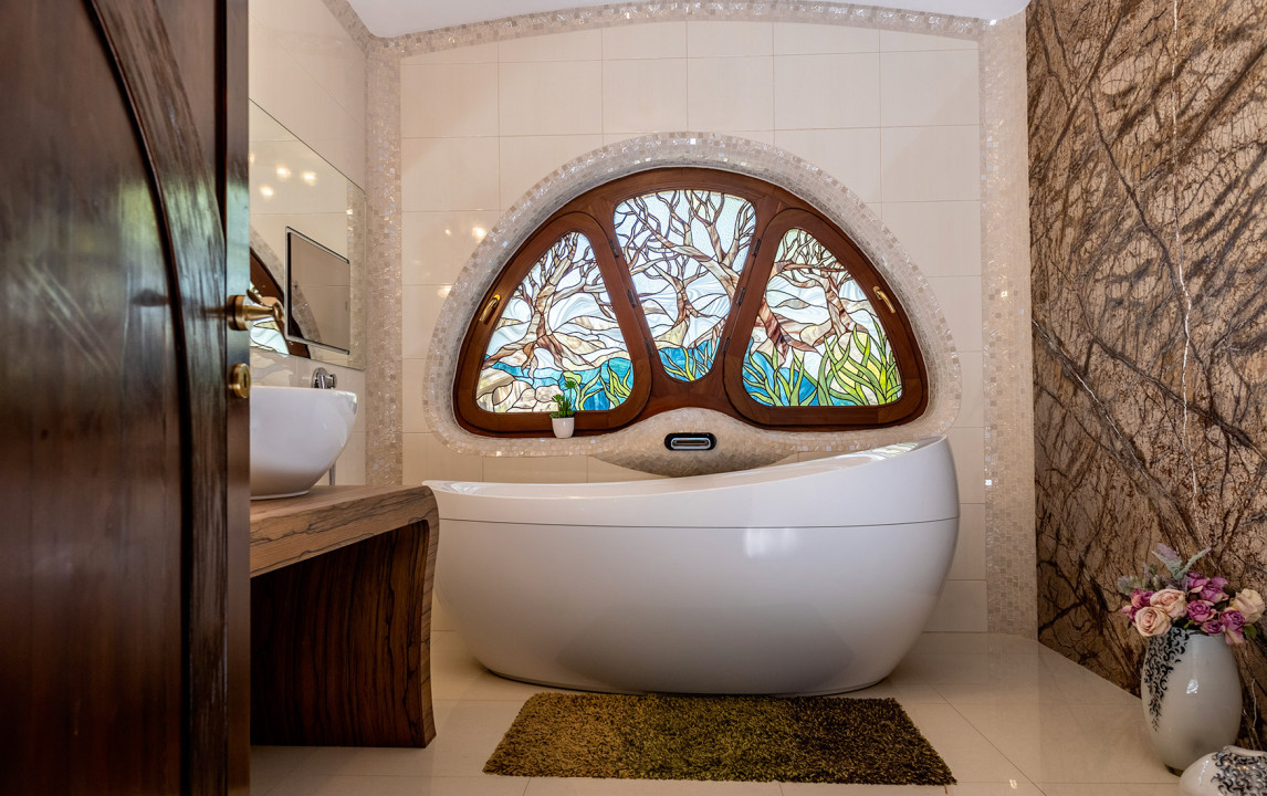 Va propunem spre vânzare o proprietate unică, "Casa fără colturi", cum mai este ea supranumita, este proprietatea care combina luxul cu clasicul nemuritor și opulenta.