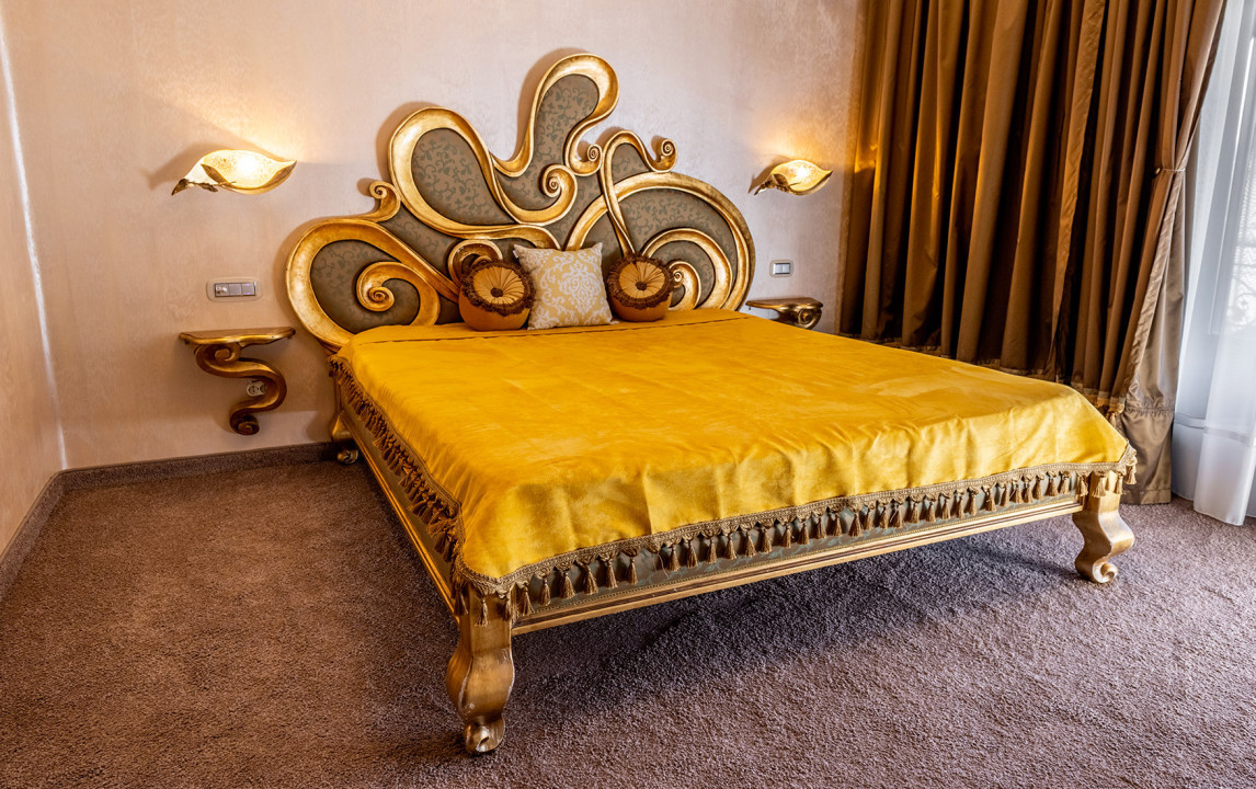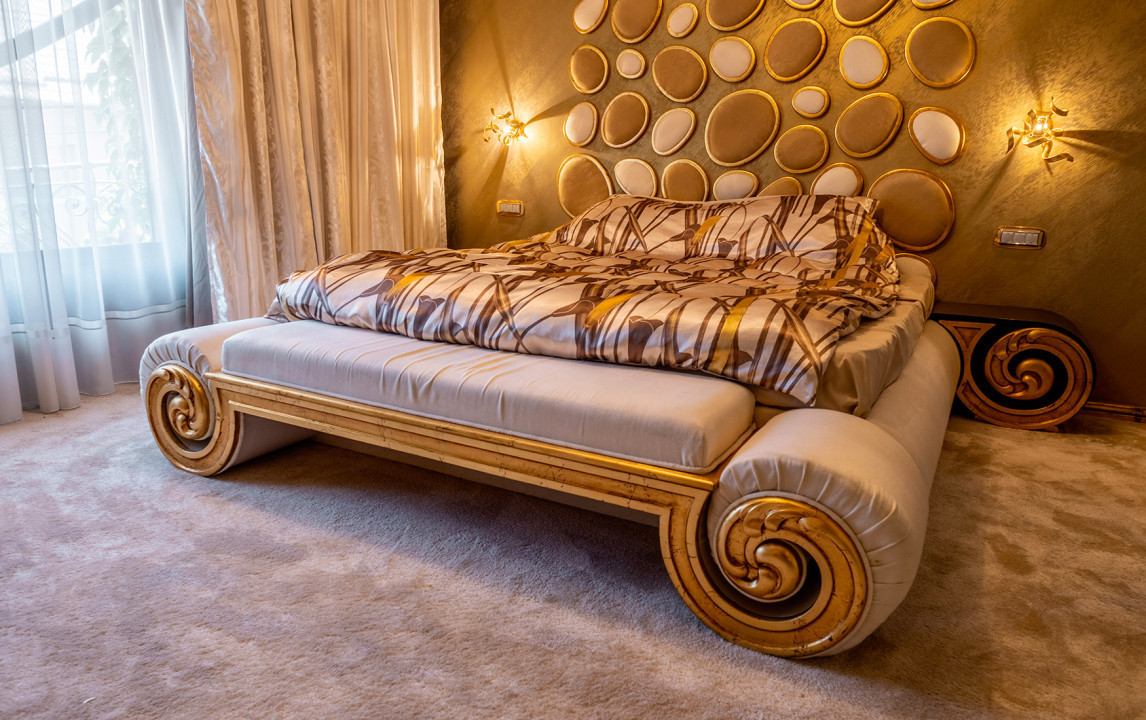 Zona matrimonială este cuprinsă dintr-un dormitor zugrăvit cu vopsea stucco veneziano, iar ornamentele și corpurile de iluminat sunt placate cu aur de 24 karate (plinta, ornamente pat, lustre), baie dotată cu duș, cu un blat de marmură roșiatică și decorată cu mozaic Bisazza placat cu platină, toaletă dotată cu funcția de spălare și uscare, chiuvetă și un dressing cu balcon.