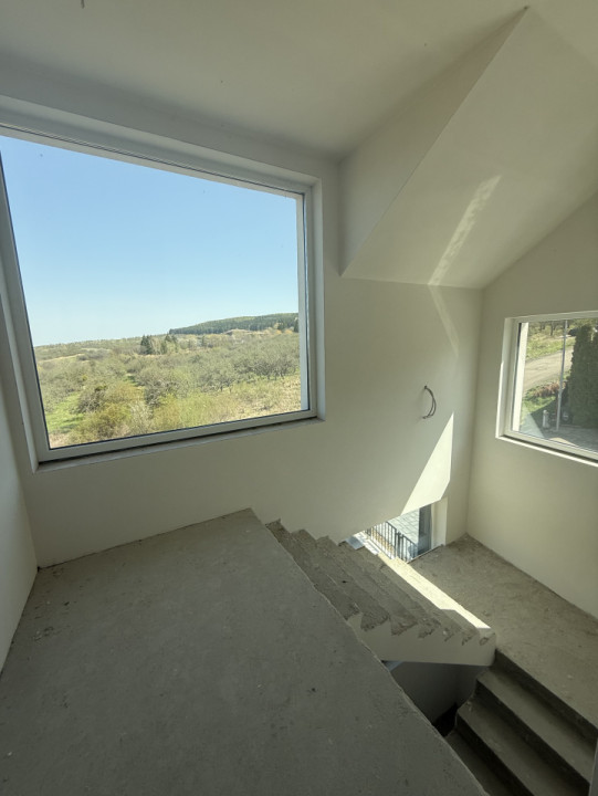 Va propunem spre vanzare casa individuala, in apropierea restaurantului Aroma. Locatia ofera o priveliste deosebita asupra orasului, intr-un cartier rezidential nou, fiind ferita de aglomeratia cotidiana. Cu 220 mp utili fiecare, pe 3 niveluri, casele sunt compartimentate astfel: Demisolul, cu acces direct in curtea interioara are o suprafata utila de 71,83 mp. Este compus din living, zona de luat masa, bucatarie, camara, o baie si spatiu tehnic. Parterul are o suprafata utila de 72.81 mp, cu access la cele 3 parcari, are in componenta 2 dormitoare cu baie proprie fiecare si un dressing incapator. Etajul, cu 74.57 mp utili, este compus dintr-un dormitor matrimonial cu baie proprie, dressing si o logie cu o panormama superba asupra orasului. Tot la etaj se afla cel de-al doilea dormitor cu baie proprie. La exterior, casele sunt la stadiu de finisat, zona parcarilor fiind pavata, iar curtea interioara fiind amenajata si imprejmuita. Interiorul este la stadiu de semifinisat, avand tamplarie PVC GEALAN, pereti gletuiti, incalzirea in pardoseala si centrala termica.