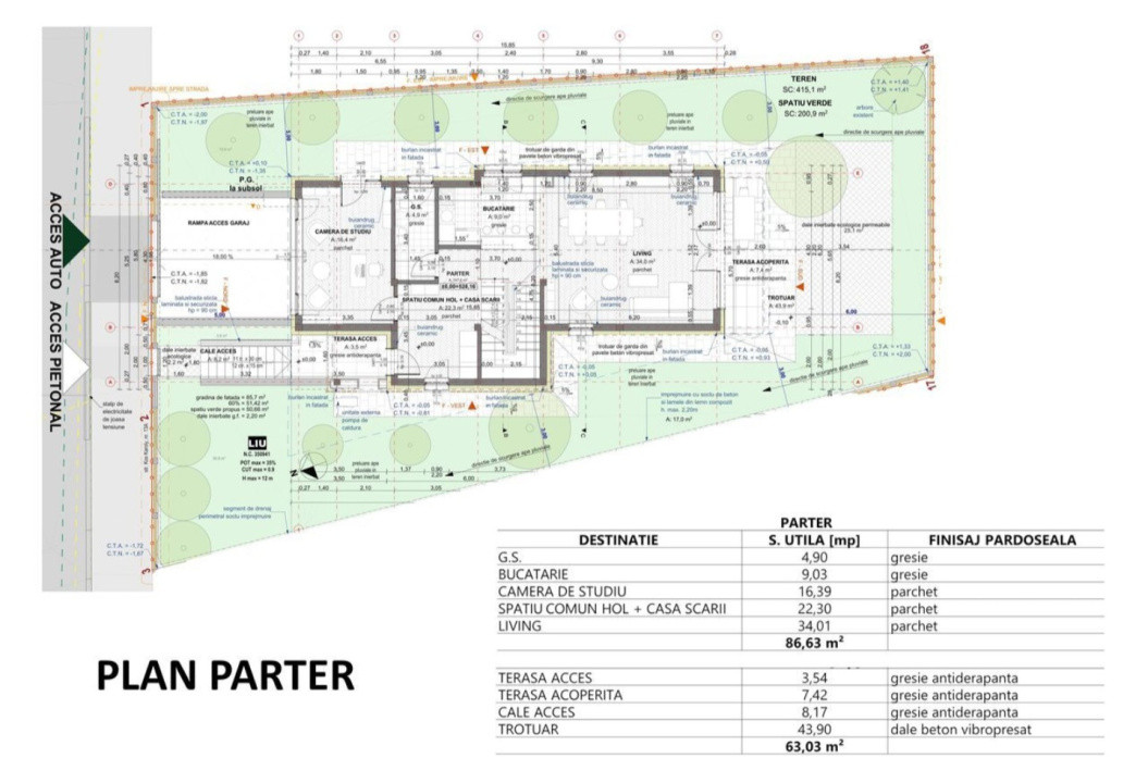 -Teren privat: 415 m², amenajat cu atenție la detalii, spațiu verde si sistem de irigare