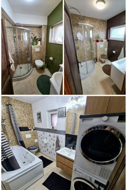 Casa se vinde complet mobilată și utilată, cu tot ce se vede în poze (electrocasnice majoritatea Beko și toate A+++, din care plită pe inducție Electrolux, mașina și uscător rufe Beko ambele A+++, 3 tv-uri LED LG smart, 4K, FHD, sistem audio Pioneer 5.1 integrat în pereți, nu se văd cabluri, prize suficiente pentru toate necesitățile.