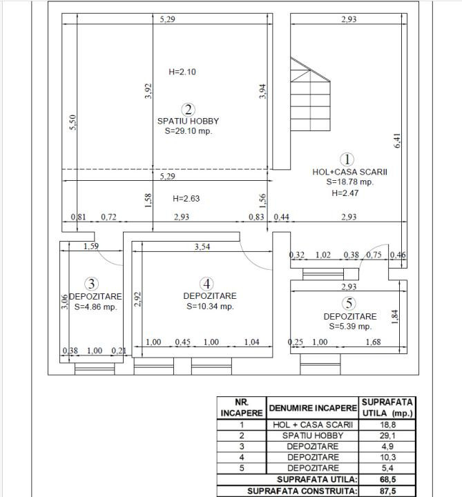 Etaj: 4 camere, 3 băi și hol.