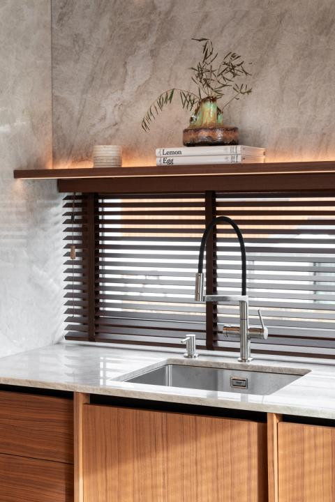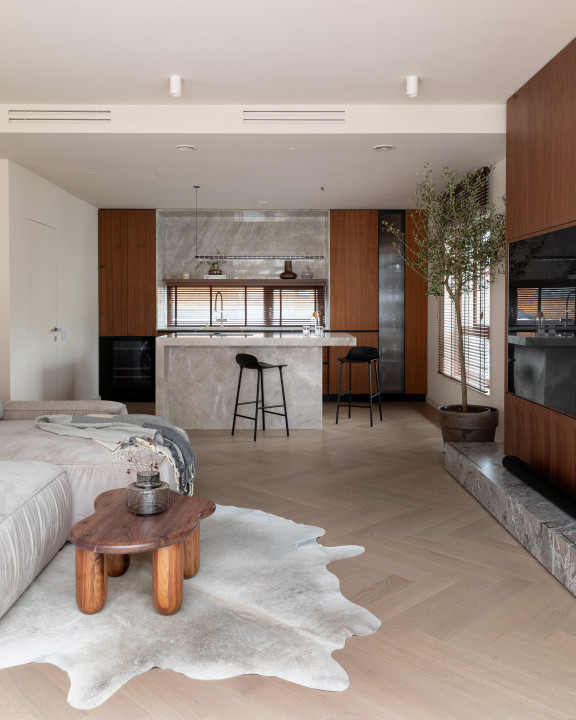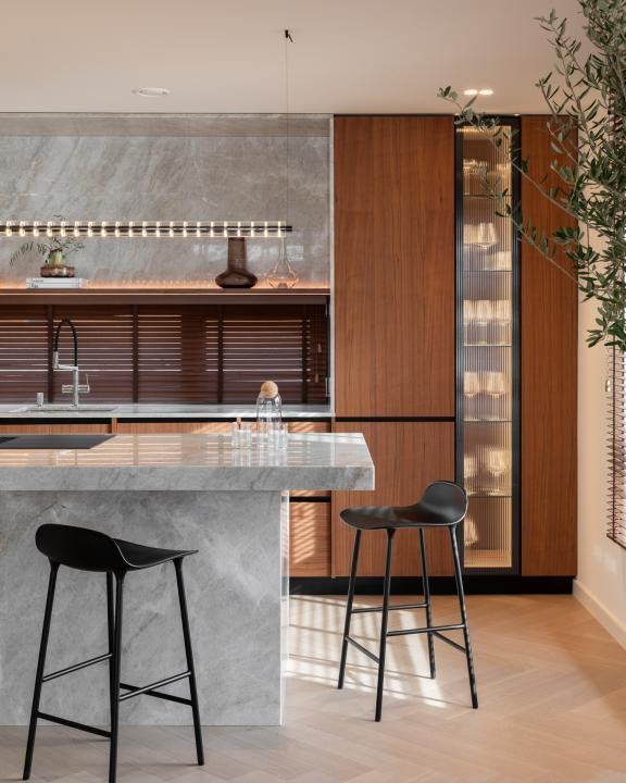 Interiorul reuneste branduri de prestigiu: parchet austriac Weitzer (nuc american), piatra naturala Taj Mahal, mobilier Artisan si sistem audio Bowers & Wilkins integrat.