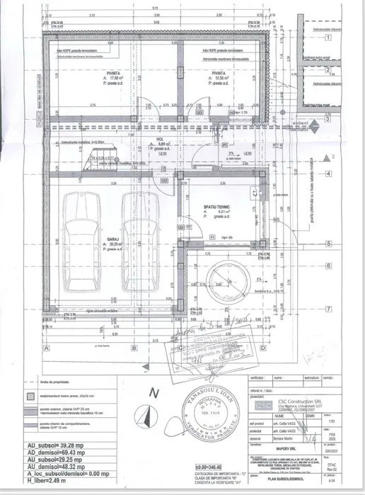 Demisol (76,76mp utili): garaj pentru doua masini, birou, spatiu tehnic, pivnita, hol.