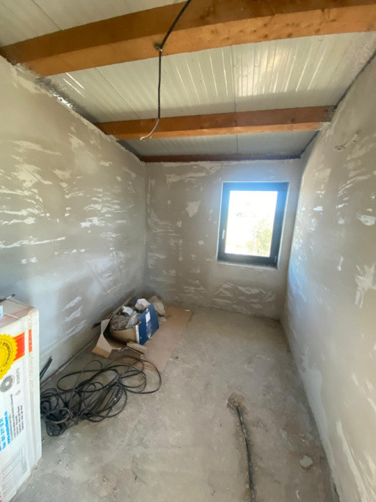 Etaj: o baie, un dormitor matrimonial cu dressing, doua camere pentru copii si iesire pe terasa mare.