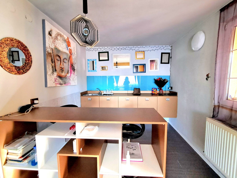 - La parter se află: 1 bucătărie cu loc de luat masa open-space cu livingul cu șemineu, 1 dormitor, 1 baie, 1 balcon.