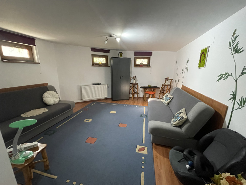 PARTER: 1 living generos, bucatarie, 1 camera care poate servi drept birou sau chiar dormitor,1 bucatarie, 1 baie, 1 sala de mese cu iesire pe balcon.