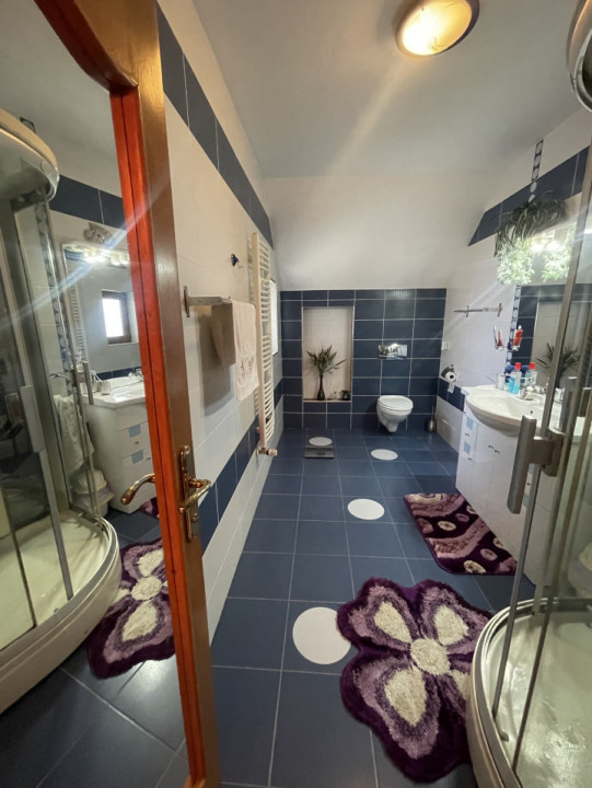 ETAJ: 4 dormitoare luminoase, unul din ele avand dressing si baie proprie, cu jacuzii, 1 hol generos, 1 baie, 4 balcoane perfecte pentru relaxare. Teren liber cu suprafata utila de 739, cu o gradina cu pomi fructiferi si legume , detine un foisor perfect pentru zilele de vara pentru a petrecere timp cu familia.