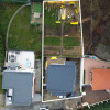Terenul este terasat si amenajat cu gazon, si este imprejmuit cu garduri si ziduri din beton.
