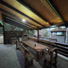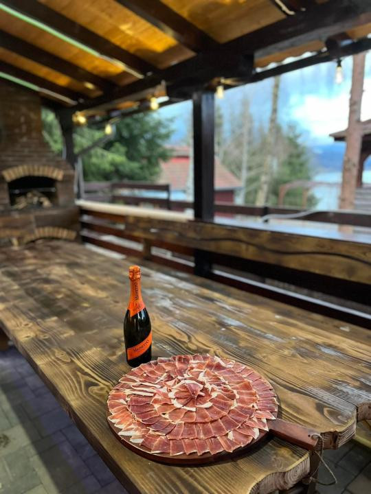 In fața cabanei există o terasă de 40 mp, utilata, cu cuptor cu gratar, plită și chiuvetă, iar în partea din spate o sală de 80 mp, utilată cu mobilier din lemn masiv, o debara și baie.