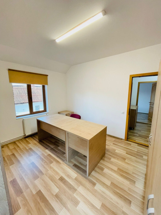 - La parter regăsim 1 hol de acces, 1 baie utilată, 1 bucatarie, 1 cameră spatioasa/sala de sedinte;