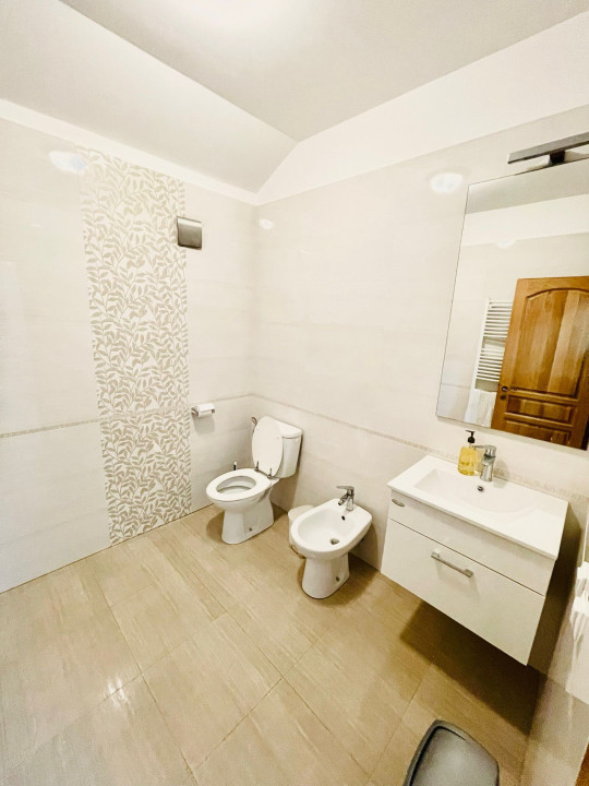 De asemenea, beneficiază de încălzire prin centrală termică proprie, geamuri termopan, instalație de aer condiționat, sistem de alarmă, internet.