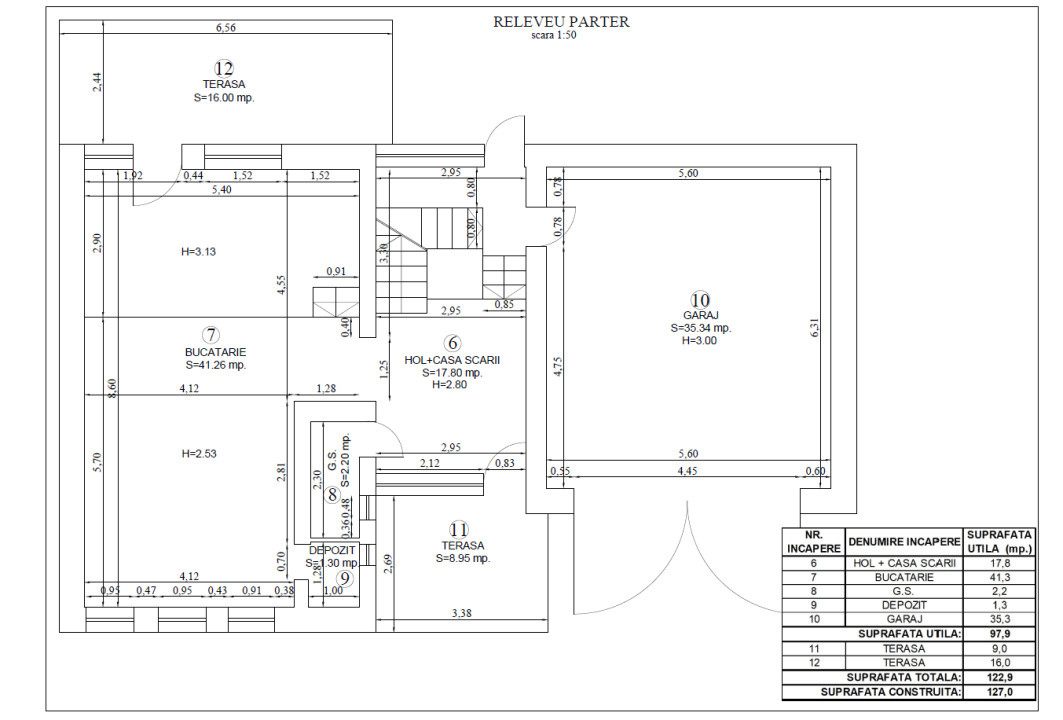 Parter: open space luminos, hol, baie și garaj