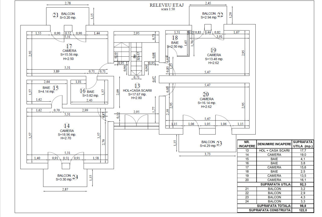 Etaj: 4 camere, 3 băi și hol