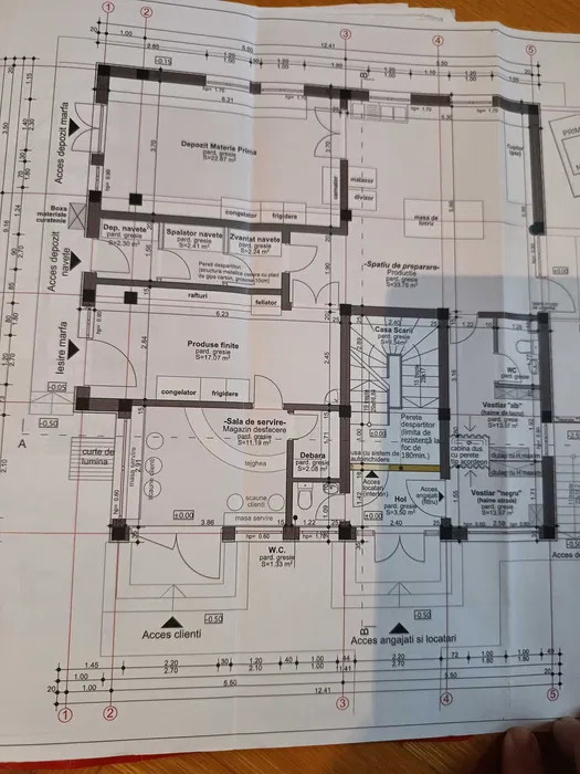 Contorizat, curent trifazic, debit de gaz, înălțime 3 m, sifon de pardoseala in fiecare cameră.