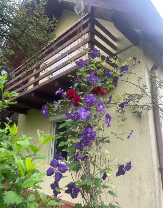 Proprietatea mai beneficiază de 2 garaje din beton, magazie și foișor. Intimitatea față de stradă este asigurată de arbori maturi, iar curtea este completată de arbuști ornamentali.