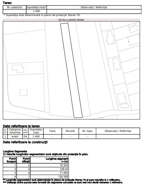 Va propunem spre vanzare un teren intravilan cu o suprafață de 1.400 mp, situat în localitatea Popești, într-o zonă aflată în dezvoltare. Terenul are un front stradal de 12 metri și o lungime de aproximativ 130 de metri, oferind multiple posibilități pentru construcții rezidențiale.