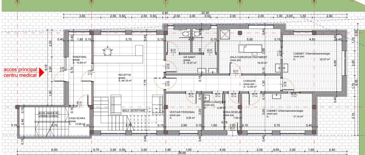 -Etaj 1: 199,5 mp construiti- 171 mp utili pentru birouri si 194 mp construiti-160 mp utili pentru clinica.
