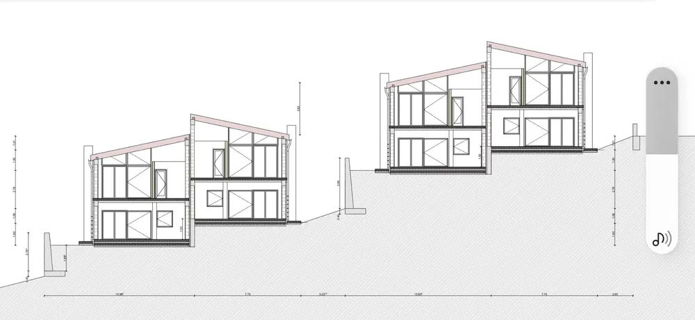 Terenul este in panta. Elevatie totala 18.5m la lungimea terenului de 63m.