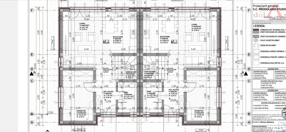 - parter structura rezistenta pe samburi ba, zidarie portanta 25cm, centuri si placa dala (nu vor exista grinzi aparente la nici un planseu)