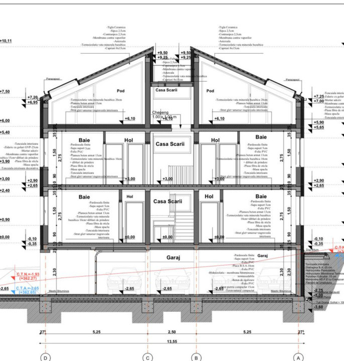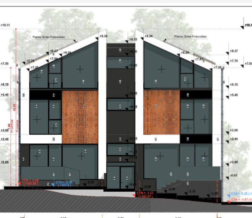 Terenul beneficiază de autorizație de construcție pentru o clădire cu regim de înălțime S+P+E+Pod, concepută modern și funcțional: