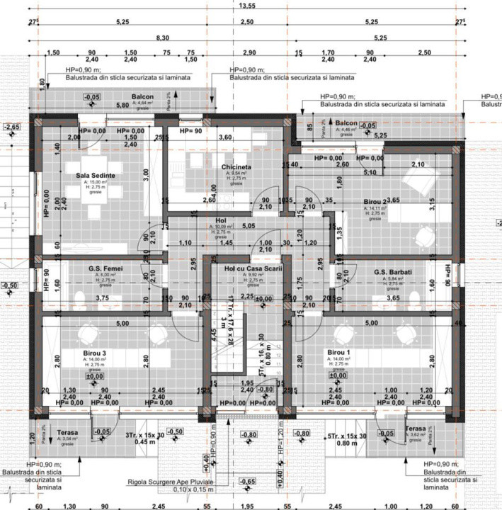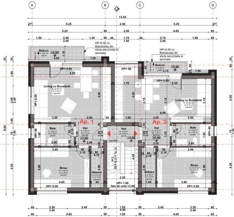 Etajul și podul sunt proiectate pentru două apartamente spațioase, fiecare cu o suprafață utilă de 90 mp.
