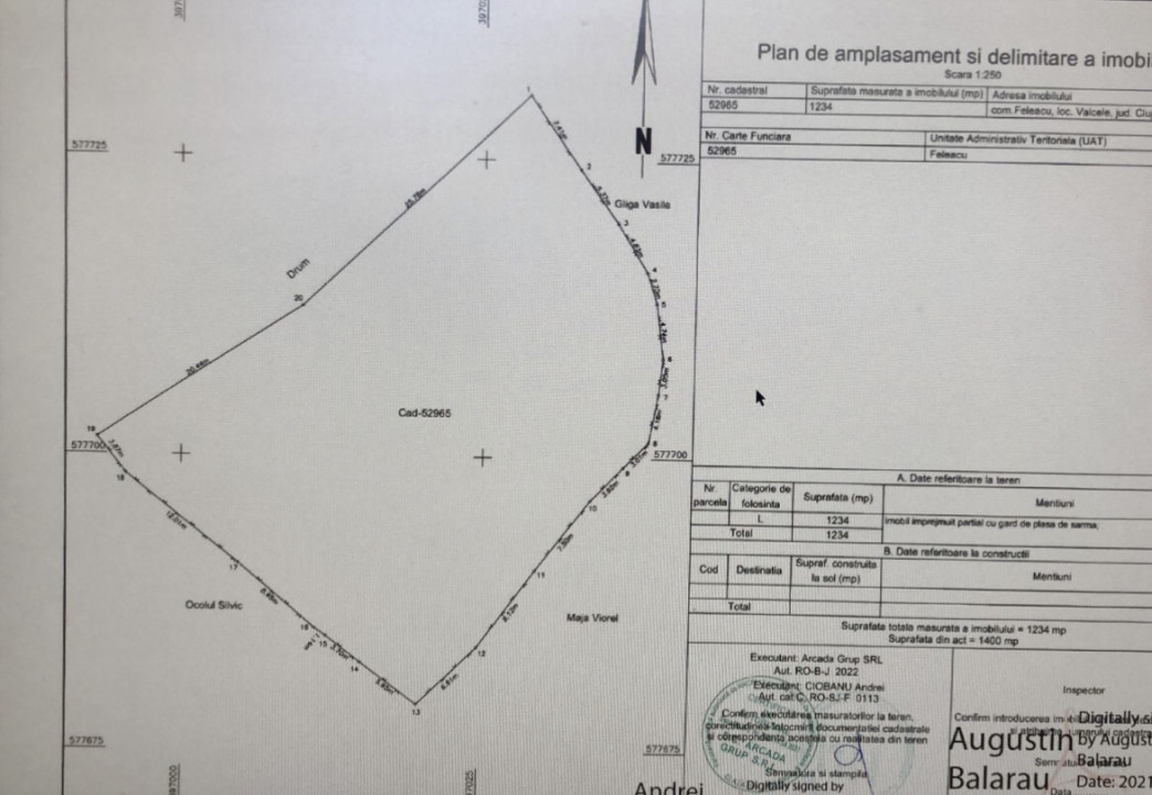 Suprafața teren 1234, utilitățile la limita de proprietate (curent, apa, gaz) .